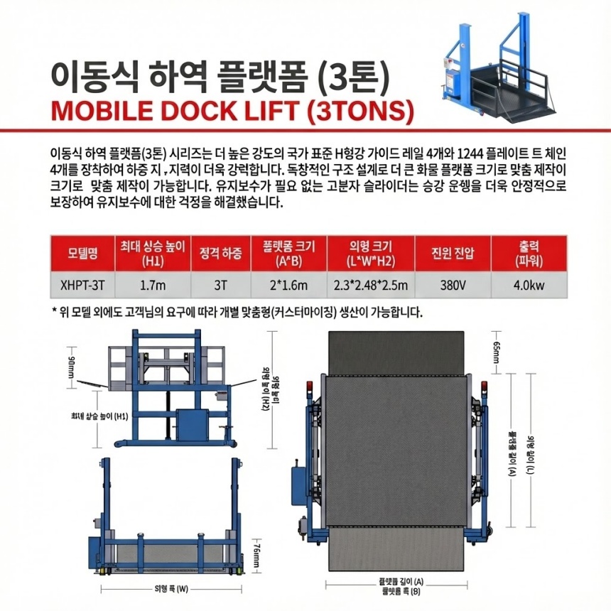 산업용리프트 이동식 상하차 리프트(3톤)