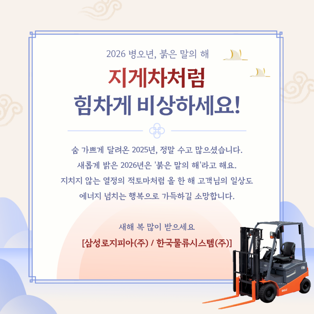 2026년 새해 복 많이 받으세요! 페이지 정보 작성자 삼성로지피아 댓글 0건 조회 14,457회 작성일 25-09-18 17:20 본문 . 목록 이전글 [뉴스_아시아경제] 모듈러에서 무인화까지…삼성로지피아, 물류 산업 판도 흔든다. 다음글 2026년 새해 복 많이 받으세요! 댓글목록 등록된 댓글이 없습니다.