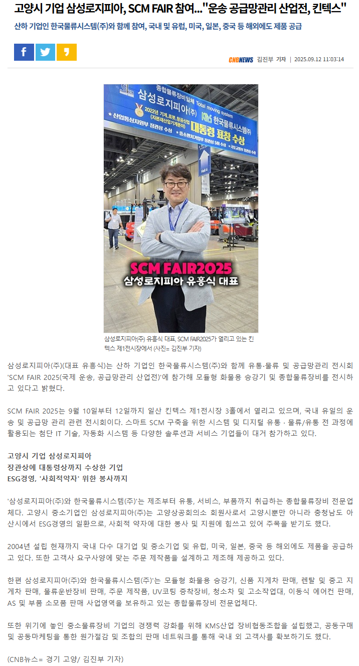 [뉴스_CNB뉴스] 고양시 기업 삼성로지피아, SCM FAIR 참여..."운송 공급망관리 산업전, 킨텍스"